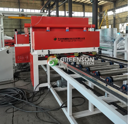 Lemachine à laminer le carton de plâtretraite des plaques de gypse revêtues de papier d'une épaisseur de 6 à 8 mm en appliquant de la colle spéciale des deux côtés, puis en stratifiant le film PVC et le papier PET.la planche est coupée en tailles standard de 60 x 60 mm pour être utilisée comme faux plafond dans la décoration intérieure.